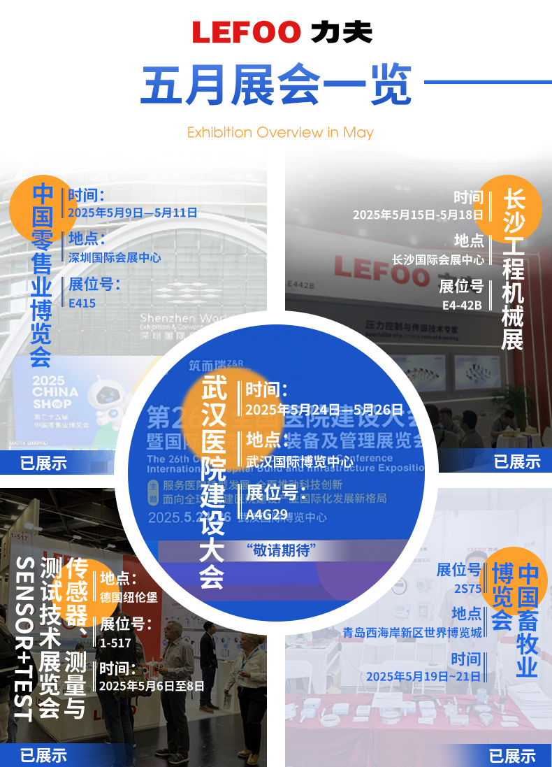 從德國紐倫堡傳感器、測量與測試技術(shù)展覽會(5.6-8,展位1-517)到深圳零售博覽會(5.9-11,E415)的智能零售解決方案展示;從長沙工程機(jī)械展(5.15-18,E4-42B)的工業(yè)傳感技術(shù)交流,到青島畜牧展(5.19-21,2S75)的智慧農(nóng)業(yè)應(yīng)用落地;最終聚焦武漢醫(yī)院建設(shè)大會(5.24-26,A4G29),力夫與您相約武漢醫(yī)院建設(shè)大會,共筑行業(yè)新生態(tài)!