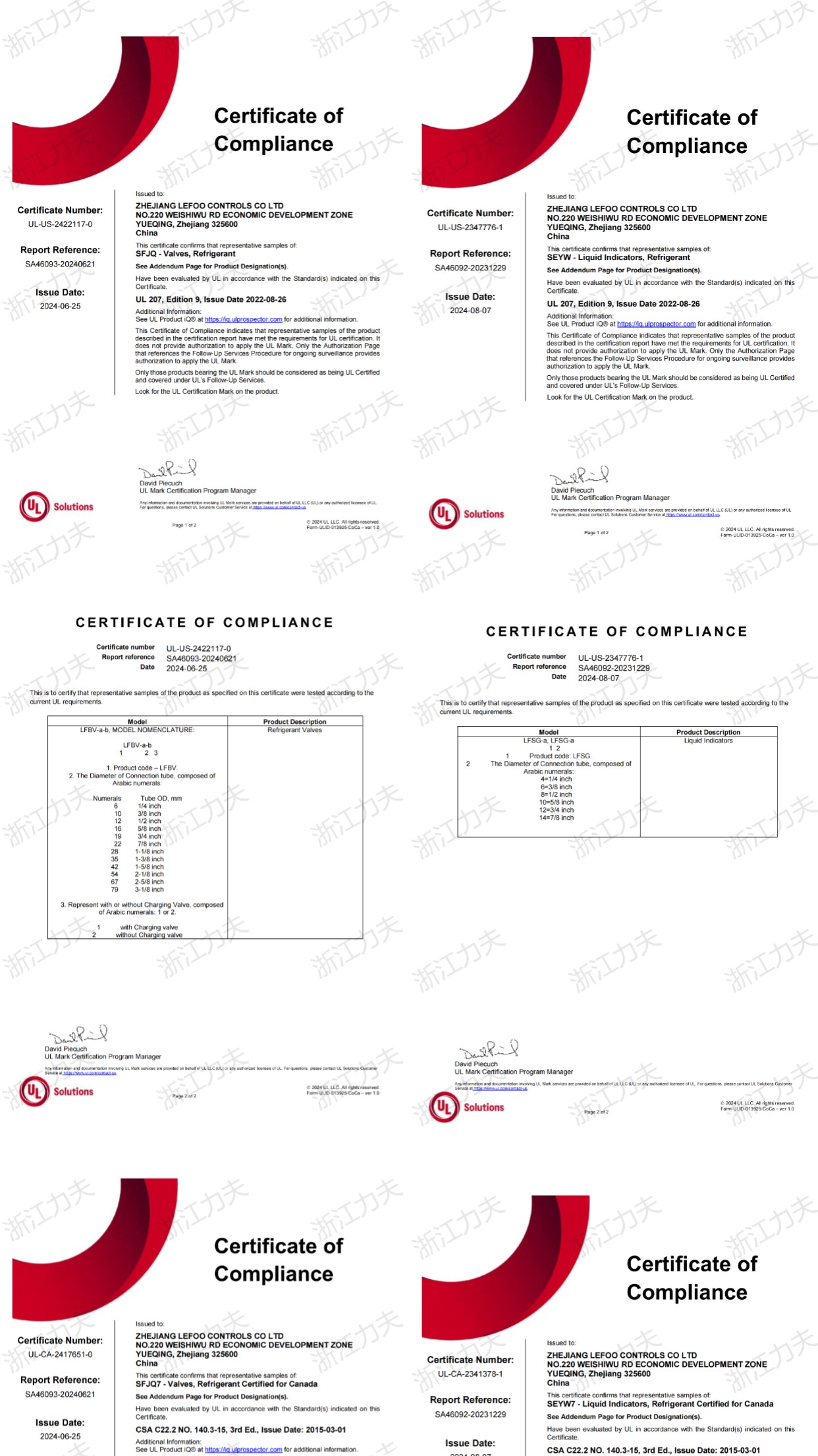 制冷球閥和視液鏡ul認證證書
