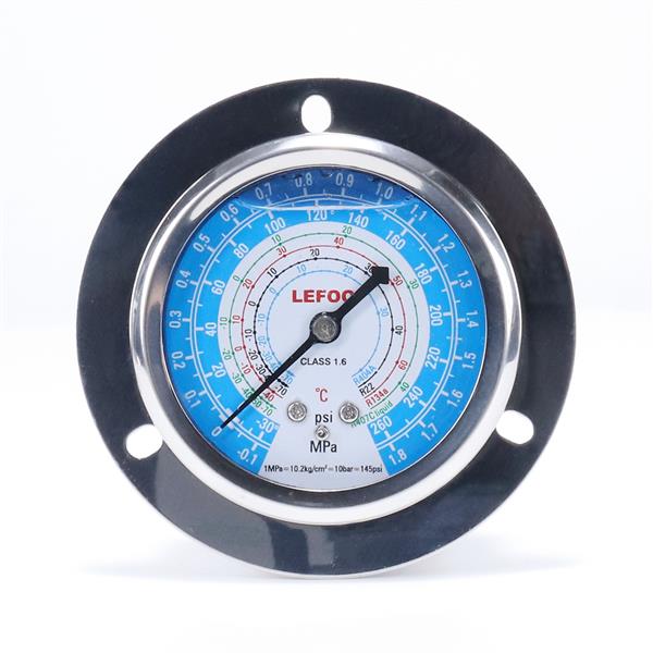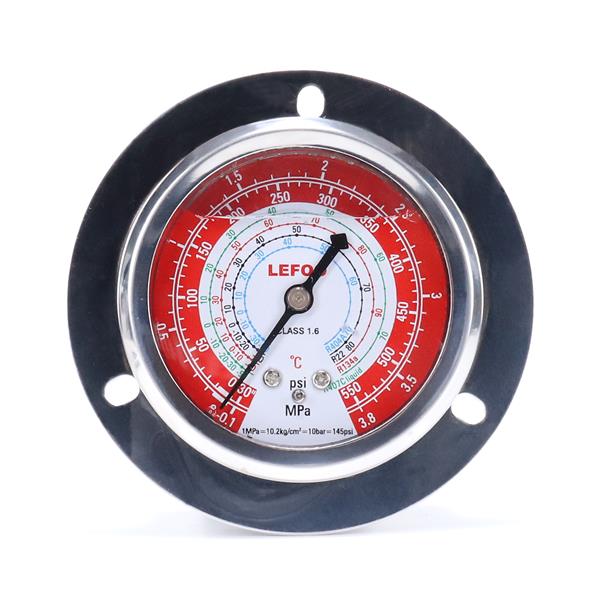 LFOPG冷煤用充油壓力表是內(nèi)部充油的制冷專用的抗振壓力表。充油壓力表用于冷凍、冷藏和空氣調(diào)節(jié)裝置的機(jī)組上。充油壓力表由多種制冷劑共組一表,方便使用。充油壓力表使用全不銹鋼表殼、超寬鍍青銅彈簧管。充油壓力表為帶法蘭安裝邊的軸向壓力表。