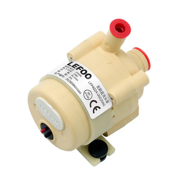 LFP40系列微型無刷直流泵高溫款符合CE/rohs認(rèn)證,流量再3~7L、最大揚(yáng)程2.5米;承壓部分用高分子塑料,靜密封設(shè)計(jì)無泄漏,搭配低噪音直流電機(jī)并具備多重保護(hù)功能。其電壓、流量可定制,體積小、重量輕,環(huán)境溫度適應(yīng)-20~40℃,介質(zhì)溫度適應(yīng)-20~55℃,電壓范圍18~30VDC,絕緣等級F級,防護(hù)等級可選IP55/IP68,適用于熱飲機(jī)、廚下式凈飲機(jī)開水機(jī)、儲熱式采暖水循環(huán)、咖啡機(jī)、凈水器、果汁機(jī)、飲水機(jī)、飲料機(jī)、自動販賣機(jī)等設(shè)備。