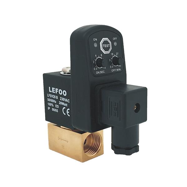 LFSV20-B電磁閥,是二通式常閉二位二通電磁閥。該閥利用線圈通電產(chǎn)生的電磁力來驅(qū)動閥芯運動,從而阻斷或流通管道中的介質(zhì),起到壓縮空氣冷凝水的定時自動排放目的。主要應(yīng)用于過濾器、分離器、干燥機、儲氣罐、滴水腳等壓縮空氣系統(tǒng)部件,排放時間與間隔可根據(jù)不同需要進行調(diào)節(jié)。